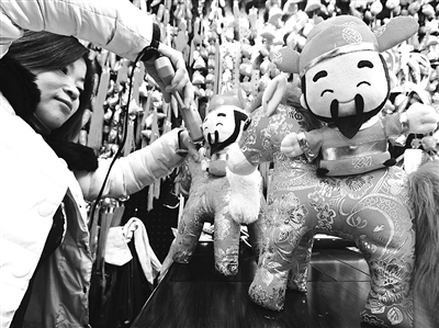 义乌中国小商品城经营户陈惠芳在安装一件马年新春吉祥物。据浙江省义乌市工商局最新统计数据显示,2013年,义乌中国小商品城成交额达683.02亿元,比上一年度净增103亿元,同比增长17.76%,这是义乌中国小商品城成交额自1991年以来连续23年居全国专业市场榜首。