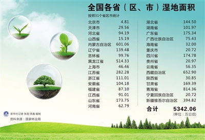 调查结果显示,全国湿地总面积为5360.26万公顷,湿地率为5.58%。近10年来,新增国际重要湿地25块,新建湿地自然保护区279个,新建湿地公园468个。我国已初步建立了以湿地自然保护区为主体,湿地公园和自然保护小区并存,其他保护形式为补充的湿地保护体系。