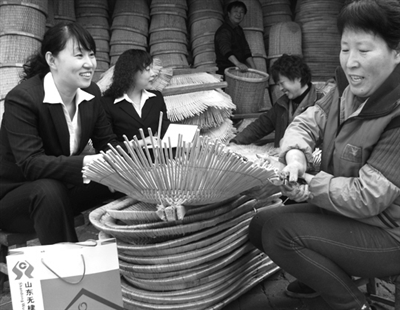 1月14日,山东无棣农村合作银行工作人员来无棣县李八里村了解柳编工艺品生产经营情况和资金需求。该县近年来给予创业女性金融、技术等支持,目前共有7000多名妇女搞起了畜禽养殖、蔬菜种植等产业。 蒋惠庆摄