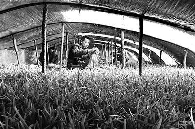 1月14日,昌黎县东岗子村村民在自家的小拱棚内收割韭菜。近年来,河北省昌黎县东岗子村村委会引导村民利用冬闲时节种植小拱棚韭菜,截至目前种植小拱棚韭菜400多亩,每亩年纯收入15000多元。