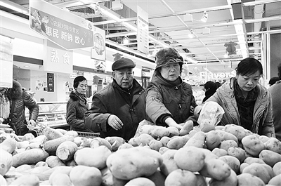 1月16日,兰州市民在华润万家超市天水路店的政府储备菜投放摊点选购蔬菜。为保障节日市场供应,稳定市场价格,兰州市政府今年共储备1万吨冬季常用蔬菜,从近日起陆续投放市场,直至3月底。