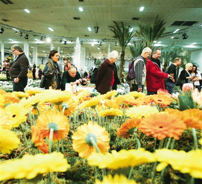全球最大农业、食品与园艺展——柏林国际绿色周日前开门迎客。本届绿色周活动共有来自70个国家和地区的1650家展商参展。主办方预计,未来10天内参观者有望超过40万人次。图为游客参观鲜花展。 新华社发