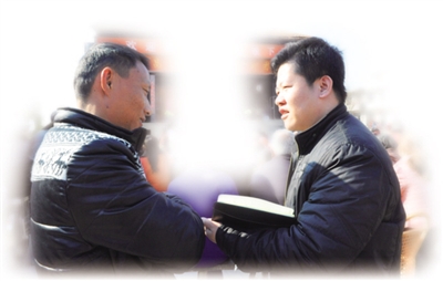 图为本报记者刘兴(右)正在采访。 本报记者 赖永峰摄