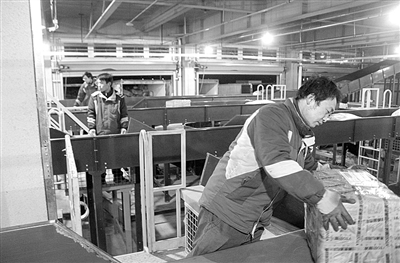 1月21日,记者在圆通速递北京公司“大开眼界”。在1.3万平方米的分拣中心里,几条纵横交错的流水线正轰隆隆地运转,平均每天有近70万件次的快件从这里进出。