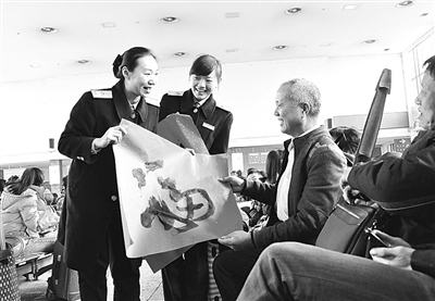 日前,家在郑州的李先生和女儿在湖南长沙火车站候车室接到了工作人员送上的“福”字,同时他还接到了一张“火车站能为您做些什么?”的调查问卷。“要是火车站能提供免费无线网络就更好了”,李先生一边说着感谢的话,一边在调查表上写下了自己的意见。据悉,车站还将汇总调查问卷搜集到的问题,采取相应措施予以解决。