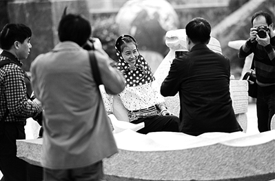 2.惠安县惠安女正在拍照。该县把旅游产业作为当地发展经济的支柱产业之一,年收入颇丰。