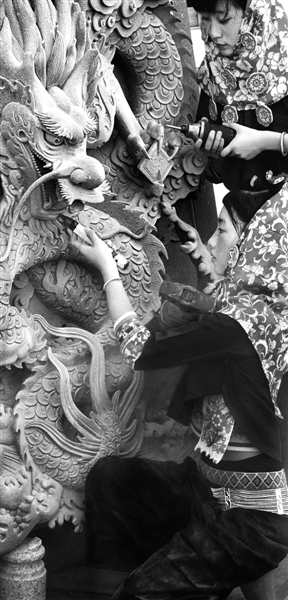 6.泉州市惠安县惠安女正在巧手雕龙。近年来,该县着力培育发展高附加值、高档次、低污染的玉雕产业,产品远销欧美、日韩等100多个国家和地区。