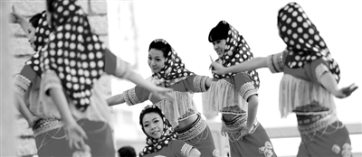 7.泉州市惠安县惠安女正在为游客表演具有当地特色的文艺节目。发家致富后的惠安女文化生活丰富多彩。