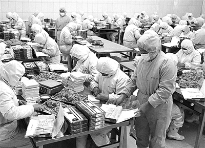 1月25日,山东滨州隆达食品公司的工人们加紧完成供出口的春卷订单。 本报记者 单保江摄