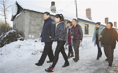 ② 1月26日,习近平冒着零下30多度的严寒,来到兴安盟阿尔山市伊尔施镇,看望慰问74岁的困难林业职工郭永财一家。