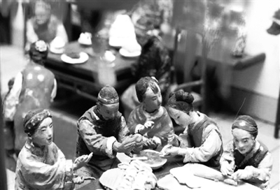 过去,北京也有人将饺子称作煮饽饽的,一度还甚为流行。“老北京”形容某人满脸官司不通人情,便会说该人“见了煮饽饽都不乐”,因为正常人见到吃饺子一定会喜笑颜开,不乐者自然就不正常了。煮饽饽应该是满族从关外带来的叫法,清末的富察敦崇在《燕京岁时记》中便有此记录:“京师谓元旦为大年初一。每届初一,于子初后焚香接神,燃爆竹以致敬,连宵达巷,络绎不休……是日,无论贫富贵贱,皆以白面作角而食之,谓之煮饽饽,举国皆然,无不同也。富贵之家,暗以金银小锞子及宝石等藏之饽饽中,以卜顺利。家人食得者,则终岁大吉。”看来,京城过年放鞭炮、吃饺子的习俗,几百年并没有太大变化,只不过饺子的名号有所不同。