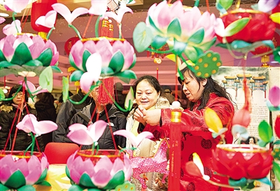 1月30日,在加拿大多伦多,观众参观秦淮灯艺展示作品。当日,来自中国南京的“欢乐春节——中国南京文化周”访问团来到加拿大多伦多,带来极具中国民俗文化特色的南京剪纸、秦淮灯艺等作品展示或表演。