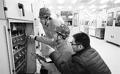 2月1日,山东威海市安监局工作人员和国网威海供电公司员工来到日月光半导体公司进行用电安全检查。
