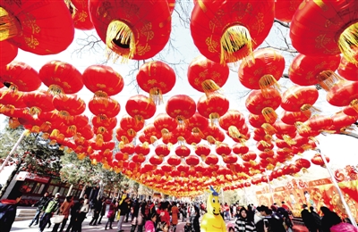 | 2月3日,北京八大处公园一片喜庆祥和气氛。新春祈福庙会在“消失”百年之后,于马年春节再次与百姓见面。 |