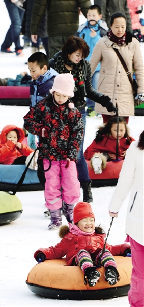 | 2月5日,北京陶然亭公园冰雪乐园,父母与孩子们尽情嬉戏,其乐融融。 |