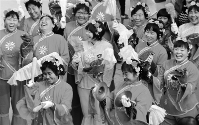 春节期间,河北霸州组织了多彩的文化活动,丰富老百姓的节日生活。图为当地农民翩翩起舞,迎接新春到来。本报记者 李景录摄