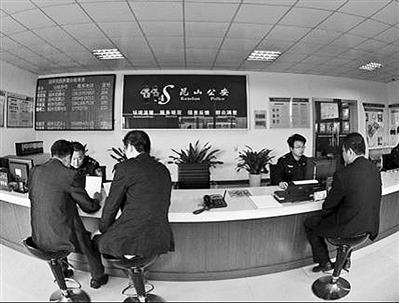 公安战线不仅要执法,也要提供服务。图为江苏昆山市公安局城西派出所泾河村警务室里,群众正在办理业务。 谢 访摄