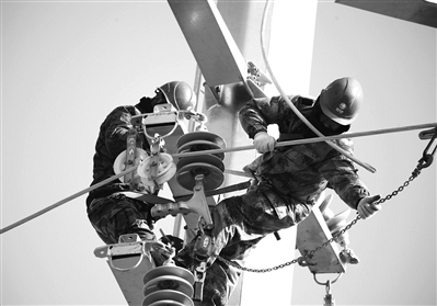 本报讯 1月16日,在位于渤海湾北部的茫茫滩涂上,国网山东昌邑市供电公司50多名职工,正在紧张有序地进行10千伏虾场2线线路架设工程。