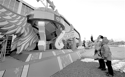 2月10日,在宁夏回族自治区中卫市,几位市民在提前欣赏元宵节灯会上展出的灯,这些灯外部包装是新制作的,内部结构和支架都是往年使用过的,成本很低。 新华社记者 彭昭之摄