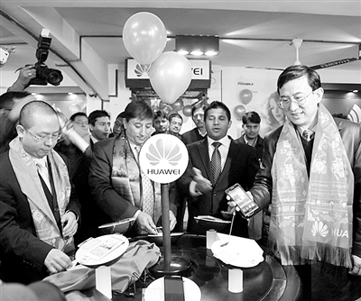 当日,中国华为手机首家尼泊尔体验专售店在加德满都杜巴广场附近的商厦开业,吸引众多尼泊尔顾客到场体验。