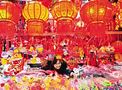 2月11日,消费者在银川市一家商城选购节日用品。随着元宵节临近,银川市场上各色传统灯笼、卡通灯笼开始热销,吸引众多消费者购买。