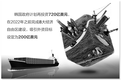 为扩大吸引外国投资规模,韩国在2003年提出了经济自由区设想,并先后设立了8大经济自由区。截至去年,韩国中央政府、地方政府和私人投资开发商已投入约540亿美元用于经济自由区建设,共吸引外资近80亿美元。韩国政府计划再投资720亿美元,在2022年之前完成8大经济自由区建设,吸引外资目标设定为200亿美元。