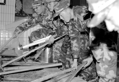 上 图 2月12日,新疆和田武警第五支队救援官兵准备装载救援工具。新疆于田2月12日17时19分发生7.3级地震后,新疆各级党政部门迅速开展救灾工作,驻新疆解放军和武警部队迅速投入救灾行动。新疆和田武警第五支队派出260名救援官兵于12日23时从新疆和田出发紧急赶赴事发地区。 周 密摄(新华社发)