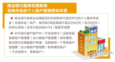 国家发展改革委、中国银监会今天联合发布《关于印发商业银行服务政府指导价政府定价目录的通知》,自今年8月1日起有条件免收个人客户账户管理费、年费和养老金异地取款手续费,并降低部分收费标准。同日,两部门正式对外发布《商业银行服务价格管理办法》,从政府指导价、政府定价、市场调节价的制定和调整,服务价格信息披露,内部管理和监管方面对银行服务价格行为进行了系统性规范。