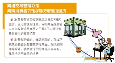 国家工商行政管理总局日前还出台《网络交易管理办法》,自今年3月15日起施行。《办法》细化了对消费者合法权益的各项保护措施,主要体现在网购售后服务、个人信息保护、格式合同管理等方面。