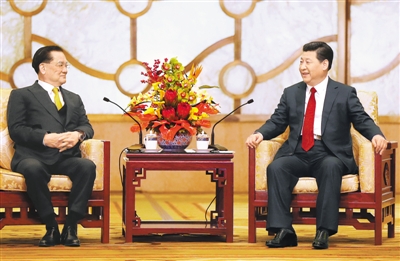 习近平强调,希望两岸双方秉持“两岸一家亲”的理念,顺势而为,齐心协力,推动两岸关系和平发展取得更多成果,造福两岸民众,共圆中华民族伟大复兴的中国梦
