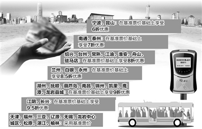 根据不同城市的实际情况,各城市均规定了符合当地实情的刷卡优惠政策。其中异地乘客来沈阳乘车刷卡,将会享受到基准票价基础上9折的优惠。最优惠城市为6折,包括宁波、昆山。记者采访了解到,目前持一卡通还不能进行其他小额消费,持“盛京通”在打出租车、公共事业缴费、购物等小额消费领域的功能,将是下个阶段的重点工作。