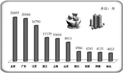 “除了创新能力提高,政府扶持,企业重视也与发明专利申请量增加密切相关。”朱欣昱说。知识产权战略实施以来,江苏不仅将专利申请与授权量指标纳入各级政府的年度考核指标,开展知识产权区域试点示范,而且与国家知识产权局签署合作框架协议和年度合作计划,形成了国家、省、市联动推进知识产权战略实施的新机制。
