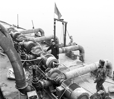 2月23日,工程人员在穿黄工程隧洞充水试验现场值守。穿黄工程是通过并排的两条隧洞把中线调水从黄河南岸输送到北岸,隧洞工程从水下40米处横穿黄河,单洞长达3450米,是南水北调中线工程中的控制性工程。 新华社记者 朱 祥摄