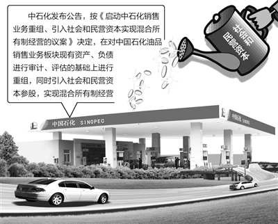 其背后原因是19日中石化发布的一则公告,按《启动中石化销售业务重组、引入社会和民营资本实现混合所有制经营的议案》决定,在对中国石化油品销售业务板块现有资产、负债进行审计、评估的基础上进行重组,同时引入社会和民营资本参股,实现混合所有制经营。