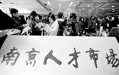 3月2日,求职者在招聘活动上求职。当日,首届全国跨区域(春季)校园巡回招聘活动在南京举行,来自14个大中城市的200多家用人单位在活动上为应往届毕业生和求职人员提供招聘岗位近2000个。 (新华社发)