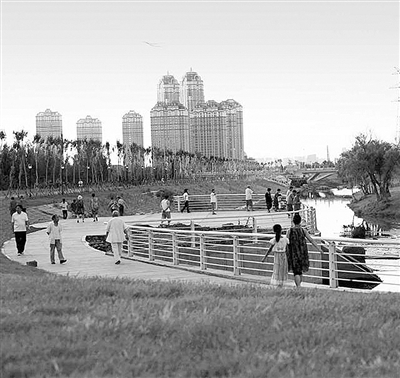 哈尔滨市民在优美整洁的环境中悠闲散步。