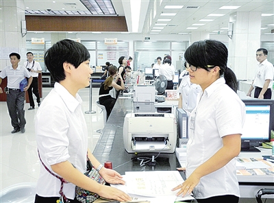 晋江市行政服务中心改进服务作风,图为工作人员向群众解答问题。
