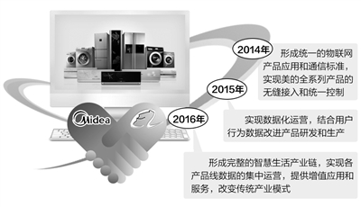 阿里巴巴集团首席技术官王坚表示,阿里巴巴的数据团队,将通过建模和机器学习,帮助美的对数据深度挖掘,从研发设计、生产制造、销售、物流、客户管理、售后服务到增值服务,重塑一个新型制造业商业模式。基于阿里云的物联网开放平台,未来将可支持数10亿个设备接入,提供海量数据的存储、计算和挖掘能力。