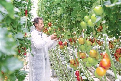 工作人员在荷兰兰辛格兰市的一个温室里作业。荷兰西部兰辛格兰市,是一个面积不足60平方公里,人口约5.5万人的小城市。得益于现代农业技术和发达的物流体系等,这个小城成为农业大国荷兰最重要的“绿港”(农业基地)之一。目前,兰辛格兰市正在打造包括绿植、鲜花和蔬菜在内的园艺生产、国际贸易和运输的综合产业链。