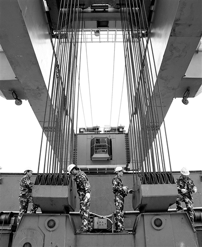 为了啃下这块硬骨头,从来没有从事过架梁施工的武警水电二总队官兵,敢于挑战,自行购买了价值4000多万元的大型运梁车和架梁机,经过反复实验、反复操作,终于掌握了这一先进技术。在施工中,他们充分发挥连续作战的精神,坚持“两班倒”作业,克服了设备庞大不易操作、桥梁变高、变跨技术难度大、重复作业人员容易疲劳等困难,实现了日架预制梁6片的纪录,达到同行业内最高水平。