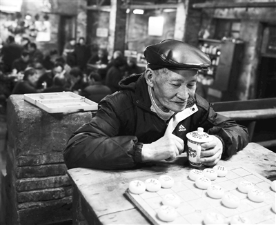 交通茶馆是重庆市一家开了近30年的老茶馆。茶馆不大,老式木架结构,房梁参差不齐,灰黑的砖瓦和斑驳的墙体透露出独特的年代感。很多人在茶馆里一坐就是一天,他们喝喝茶,聊聊天,打打牌,追忆着那些难以忘怀的城市老茶馆味道。
