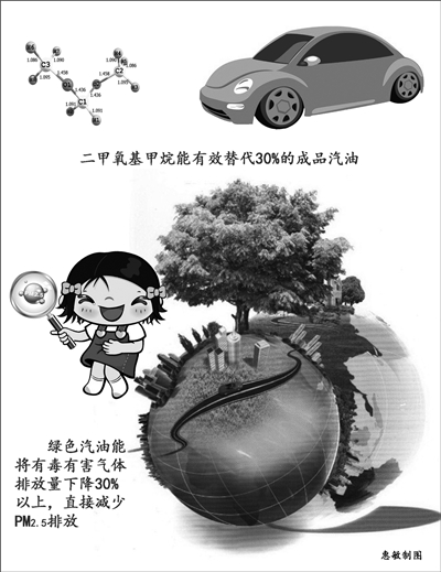 他们发明的这个能源界新秀名叫二甲氧基甲烷,能有效替代30%的成品汽油,不但质量等同甚至优于汽油,还能将有毒有害气体排放量下降30%以上,直接减少PM2.5排放。这个为能源短缺和空气污染难题作出“中国解答”的成果,被人形象地称为能给城市“洗肺”的汽油。