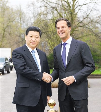 习近平表示,荷兰是最早承认中华人民共和国的西方国家之一。两国合作起步早、领域广、基础牢,不断创新进取。荷兰也是中国同欧洲开展合作的门户。吕特首相去年11月访华,我们进行了深入交谈,达成许多共识。我们双方都高度重视发展两国关系,对加强合作都有强烈意愿。中方愿同荷方一道,建设好开放务实的中荷全面合作伙伴关系,提升双边合作水平,为中欧关系发展作出更大贡献。