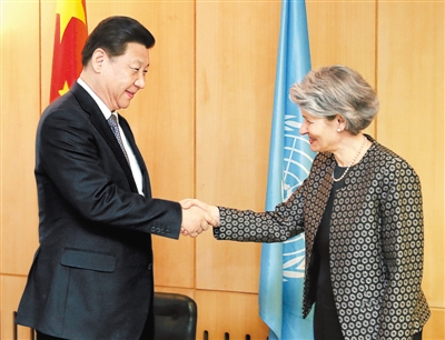 博科娃感谢中方长期以来给予联合国教科文组织的支持,相信习近平主席到访必将有力推动双方合作取得更多成果。