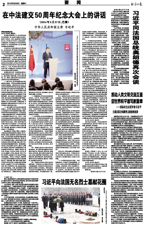 习近平和奥朗德共同出席 中法建交五十周年纪念大会