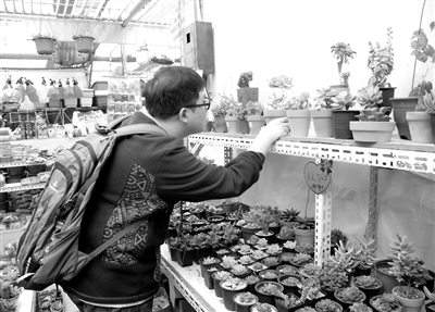 张巍在花卉盆栽这个行当已经摸爬滚打近10年了,两年前他发现了顾客对肉肉植物的喜爱,果断从卖水培植物转到了多肉植物。在他的门店里记者看到了上百种肉肉,一位20多岁的男士正在给女友选礼物。“为什么不送花呢?”记者不禁好奇。“多肉植物好养,基本不用管,放在卧室还能释放负离子,而且养着也有趣,不像花谢了就没了”,他回答得头头是道。这位男士告诉记者,他每过一段时间就会来挑一些自己喜欢的品种。这次选了熊童子、蝴蝶之舞、肉锥、缠丝卷卷四种肉肉,花了200元。“别看植物小,相比普通盆栽价格反而更贵”,张巍介绍说,店里顾客以有经济实力、追求个性的年轻人居多。价格贵的“多肉”基本有几大特点:长得慢,繁殖慢,原产国限制出口。一盆拳头大、带根茎的熊童子白绵最少要200元,“这算便宜的”,张巍告诉记者,在专业玩家手里不乏上万元的肉肉,市场价值不容小觑。