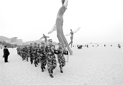 连日来,广东深圳武警边防支队联动辖区有关部门,加强辖区的治安管控力度,确保辖区景区等重要目标安全。图为官兵们在景区巡逻。