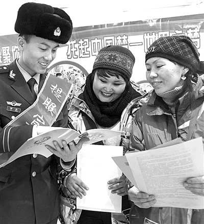 近日,新疆吉木乃边检站开展了“共创和谐口岸,凝聚你我力量,托起中国梦——世界梦”主题口岸宣讲活动。图为边检官兵在向出入境旅客宣讲边境法律法规。 李君蕾摄