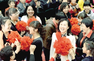 | 河北保定市南市区西高庄村为评选出的“好儿媳、好婆婆、创业之星”披红戴花。该村坚持27年抓“育民”工程,成效显著。近年来,通过拍摄每户一集“我爱我家”纪录片,开展“人人上讲堂——讲家风”等活动,使“文明、和谐、敬业、诚信”的价值观根植于村民心中。 |