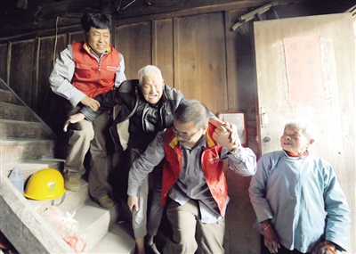 | 浙江绍兴新昌县供电公司的党员服务队来到镜岭镇外婆坑村“两保户”林本忠(左二)家中慰问,送去温暖。 |
